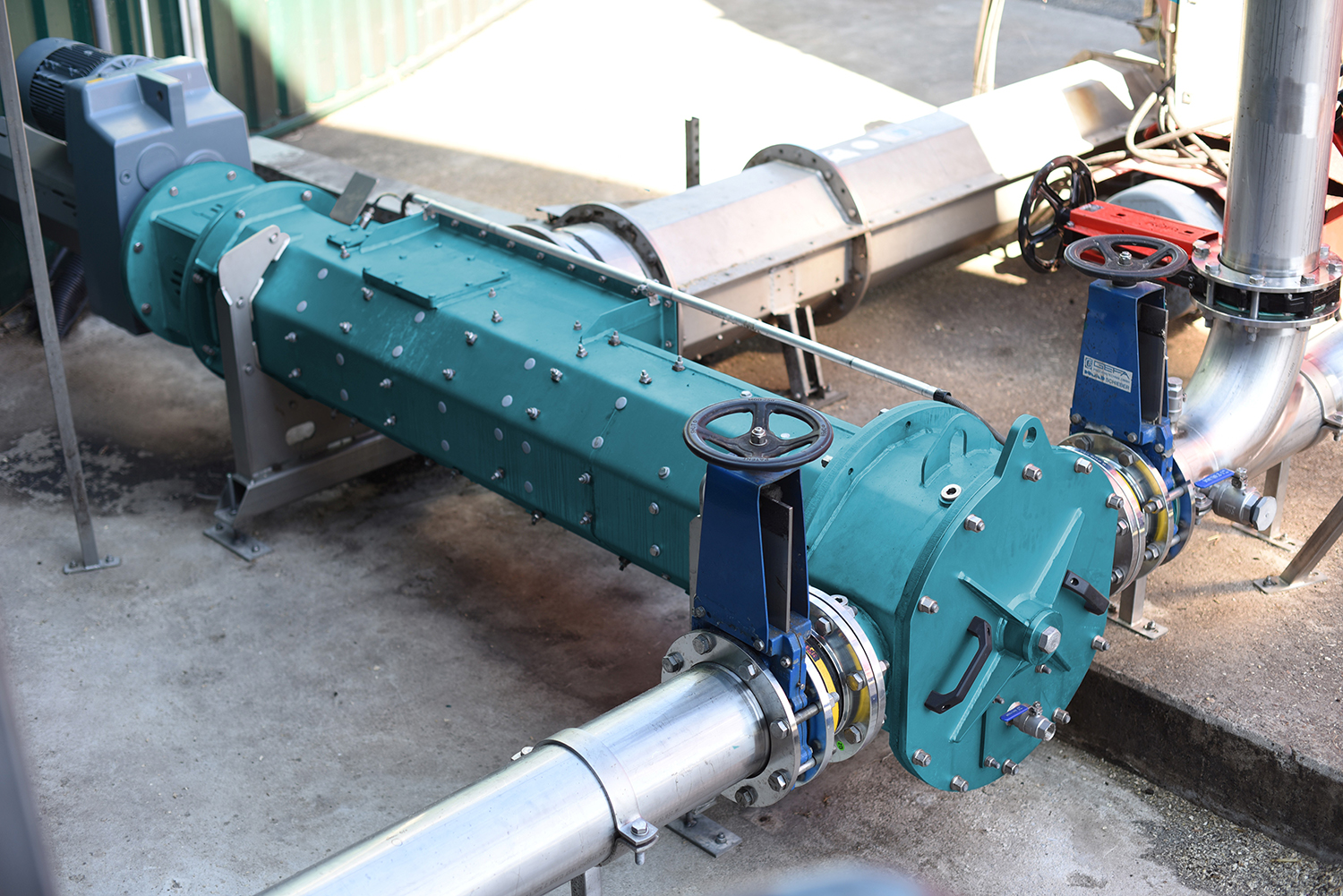 Beim FlexFeed ist die Pumpe vor der Eintragtechnik positioniert. Durch den Eintrag der Biomasse nach der Pumpe wird der Verschleiß an Pumpe und System stark reduziert.